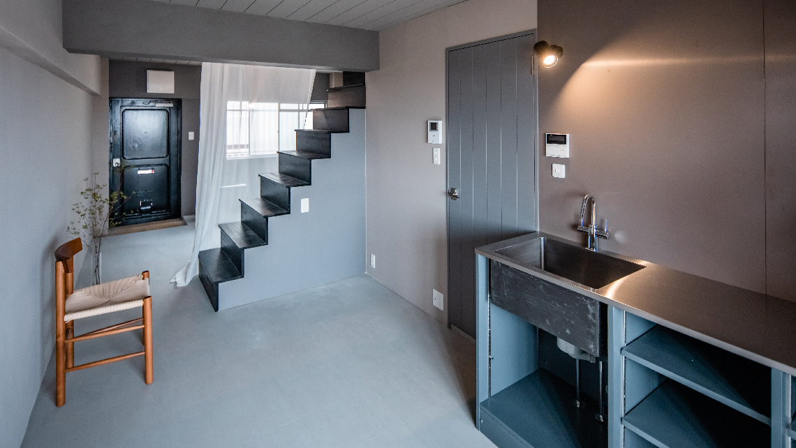 神戸東灘区の鶴亀コーポのリフォーム事業。デザイン性に富んだインテリアに豊かな周辺環境、建物であそぶ・・・。