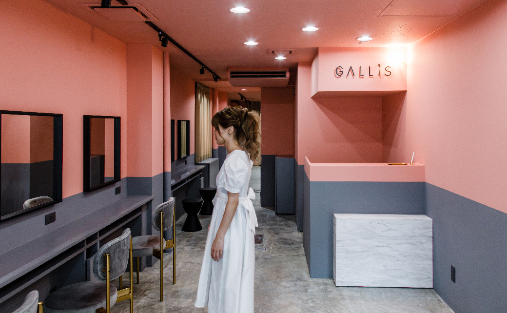 美容室GALLIS様の店舗内装デザイン・設計、yasuhiro sawa design office.とのコラボにより、美しくなっていく女性が、心地よく快適でいられる、あそびのある空間を創造しました。美しさにもあそびがある・・・。